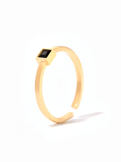 9ct Yellow Gold Open Band Birthstone Ring - Princess Cut (Black)