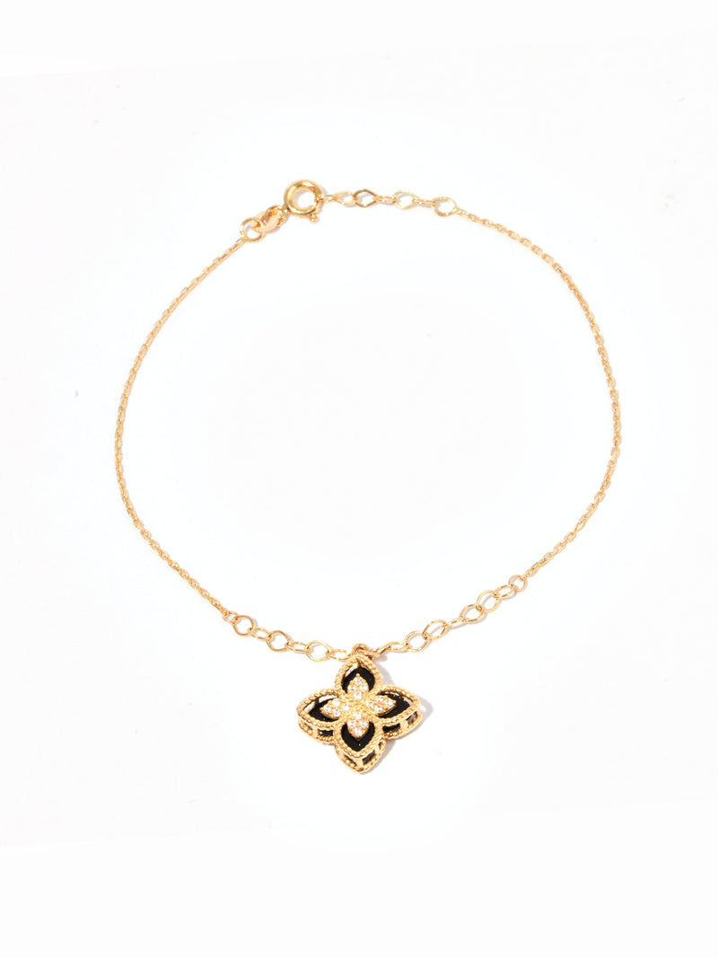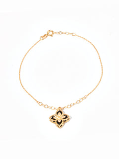 9ct Yellow Gold Flower Charm Bracelet - Onyx