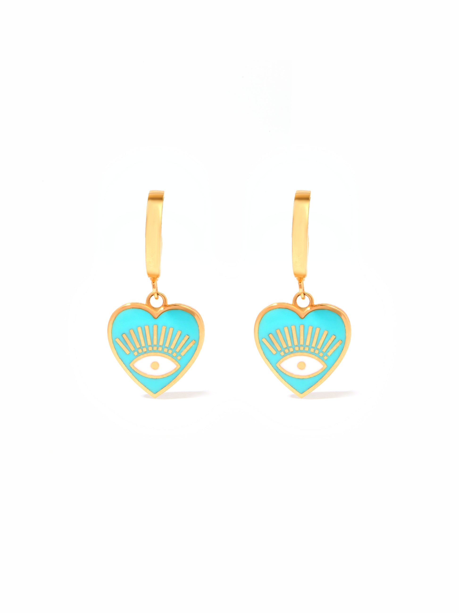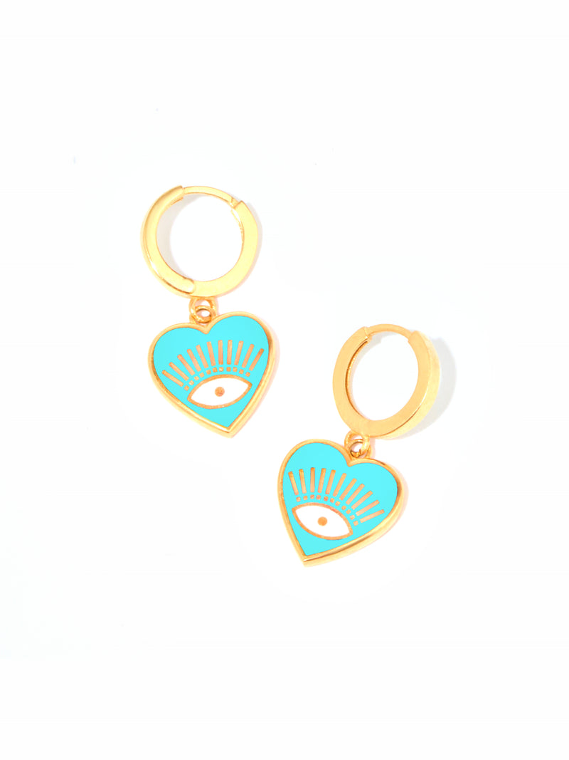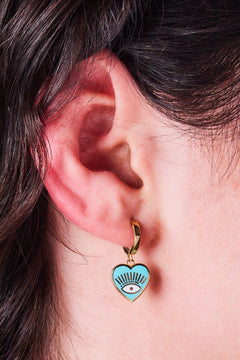 These heart-shaped hoops are bold, bright, and just a little bit mysterious.