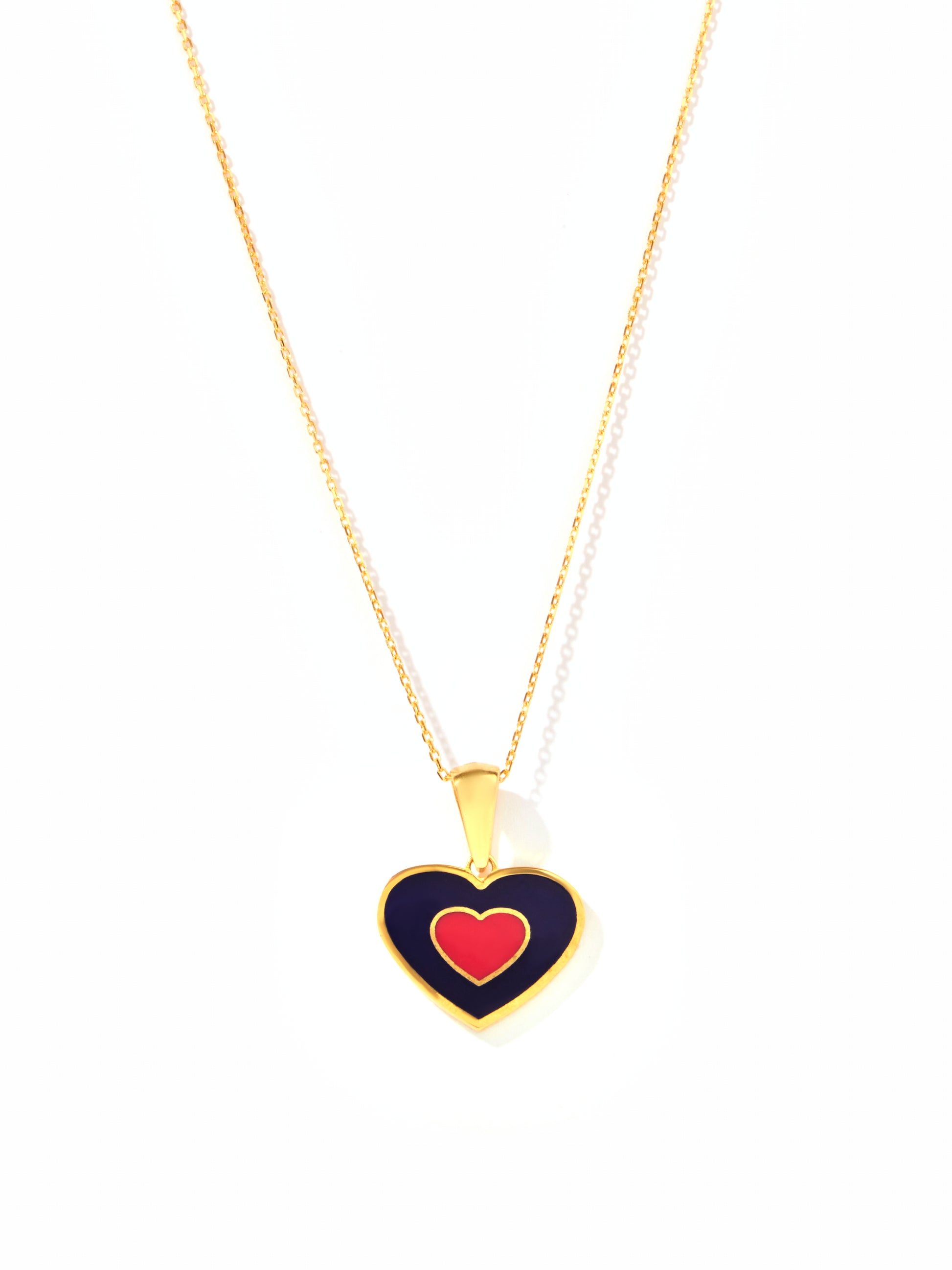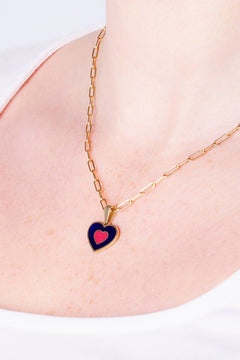18ct Yellow Gold Chain with Heart Pendant - Dark Blue & Red