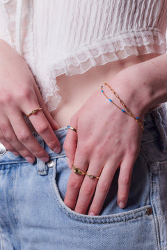 18ct Solid Gold Bracelet – with bold blue enamel.