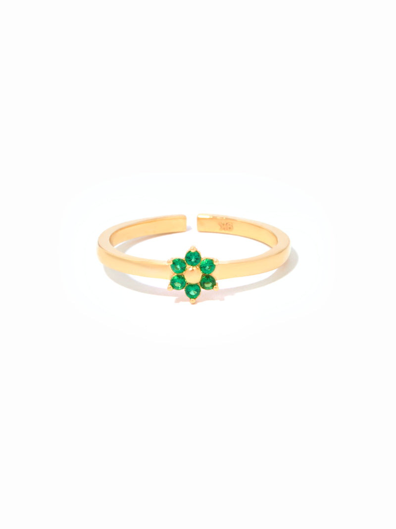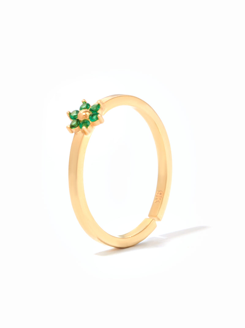 9ct Yellow Gold Open Band Floral Birthstone Ring - Green