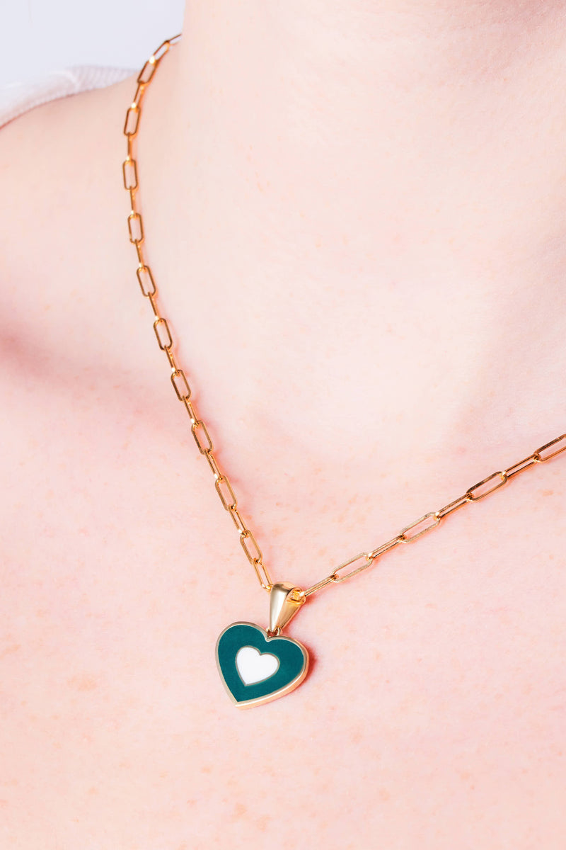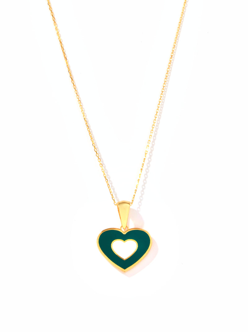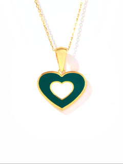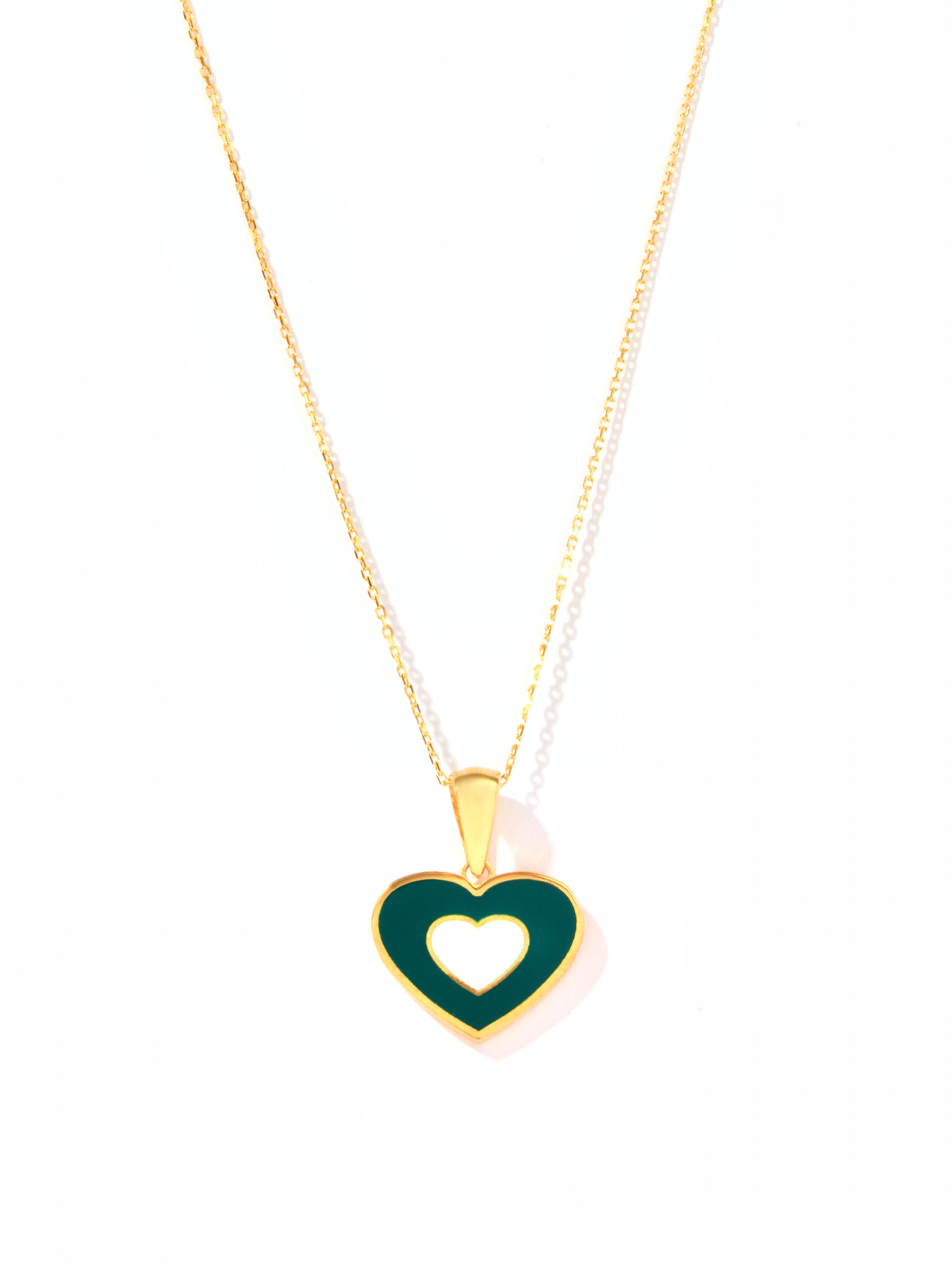 18ct Yellow Gold Chain with Heart Pendant - Green & White