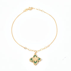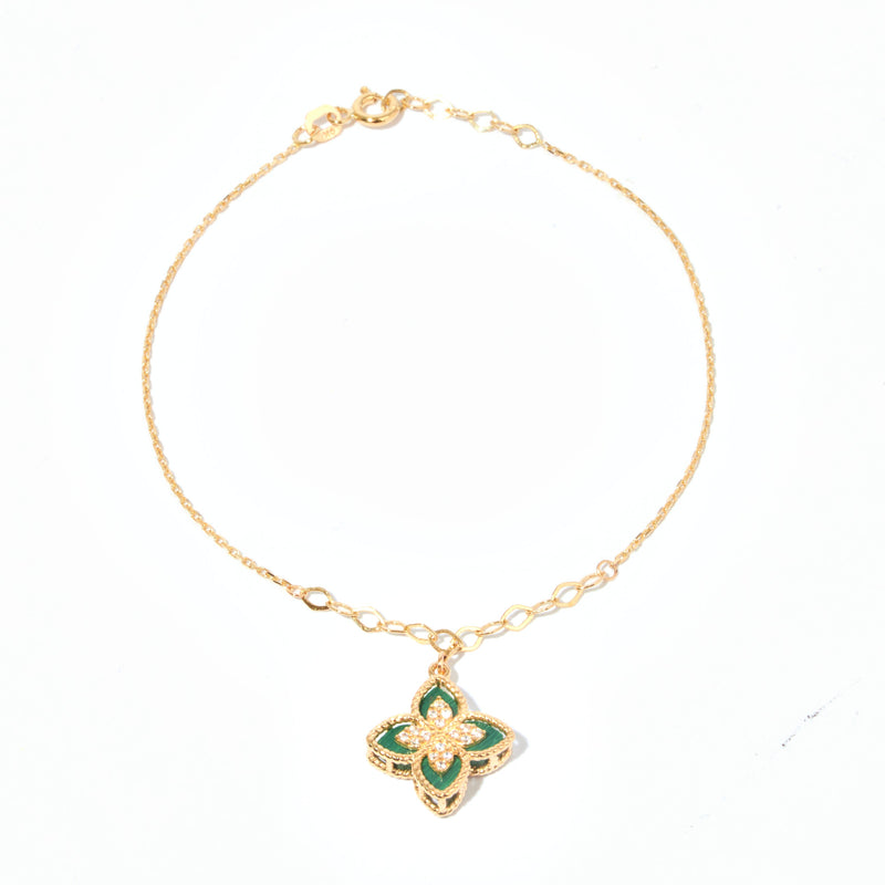 9ct Yellow Gold Flower Charm Bracelet - Malachite