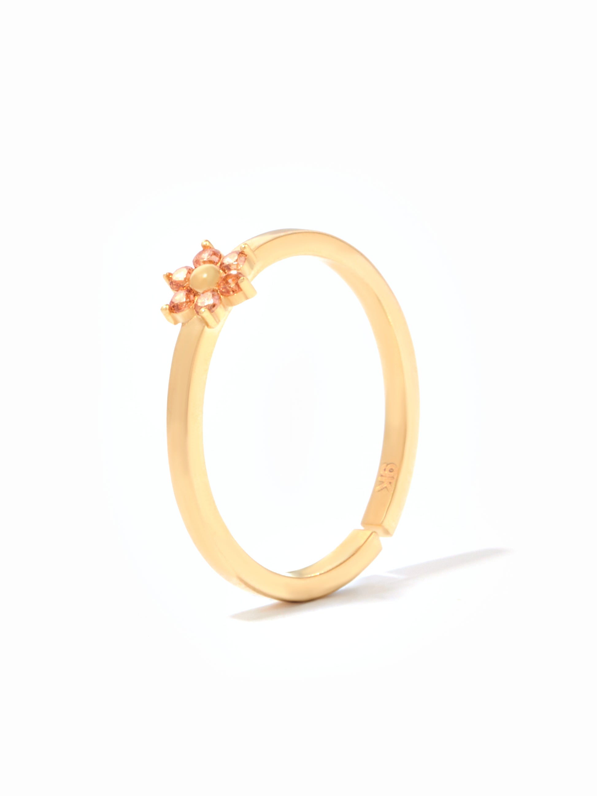 9ct Yellow Gold Open Band Floral Birthstone Ring - Peach