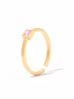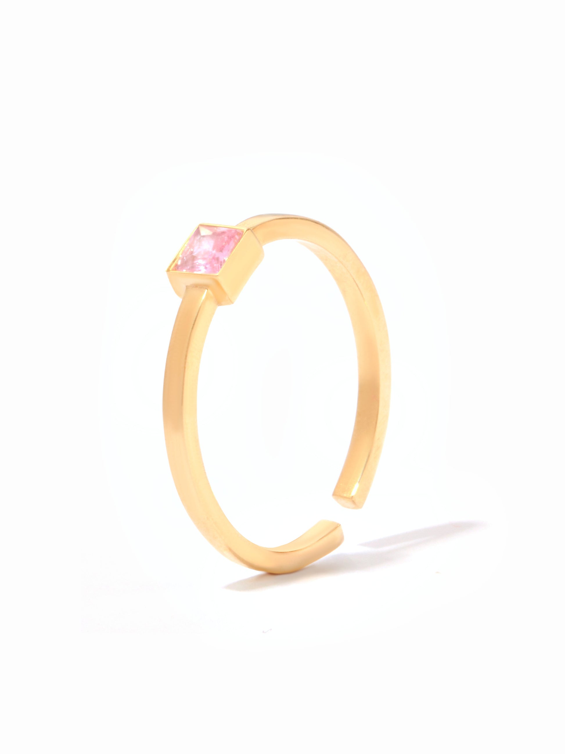 9ct Yellow Gold Open Band Birthstone Ring - Princess Cut (Pink)