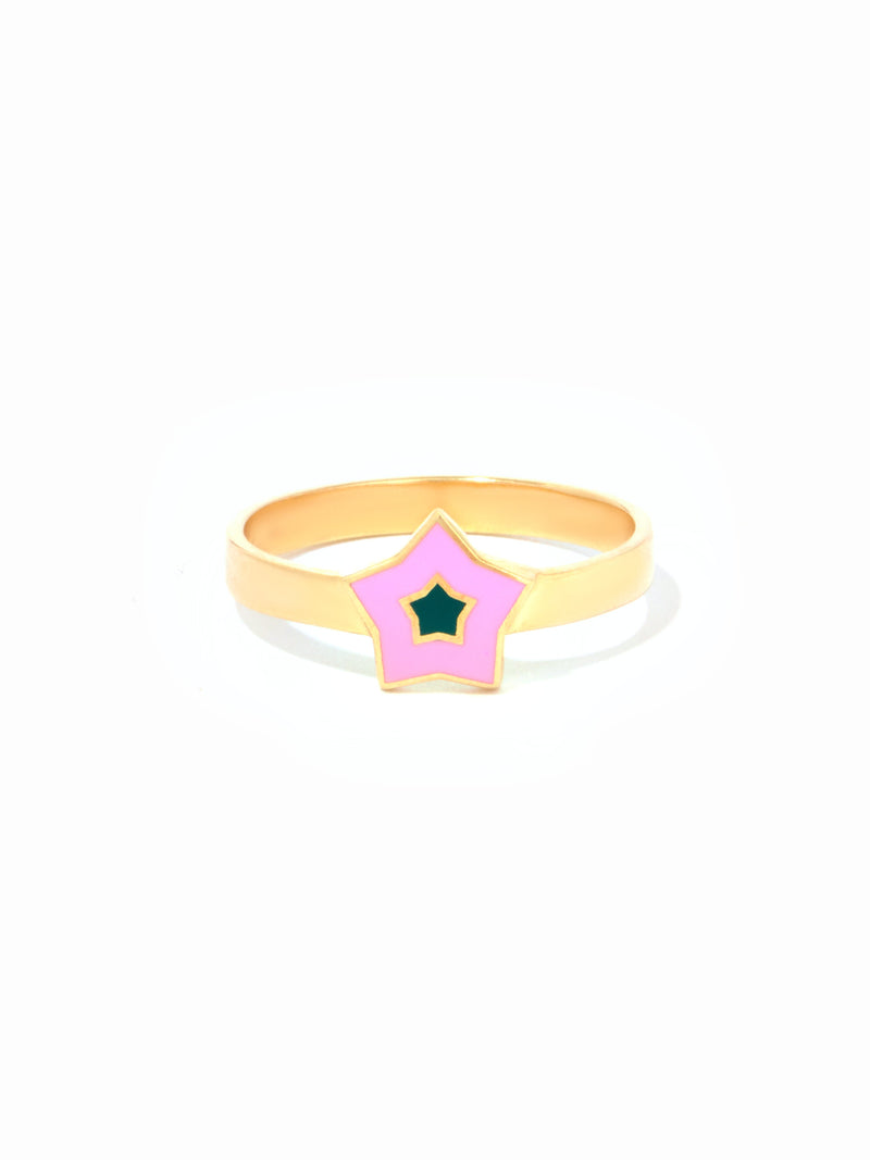 9ct Yellow Gold Star Ring - Pink & green