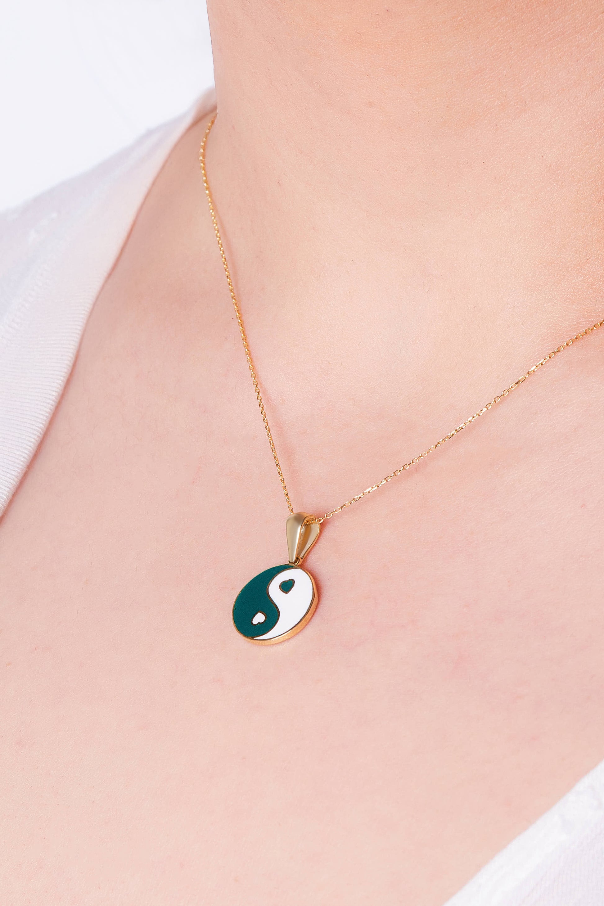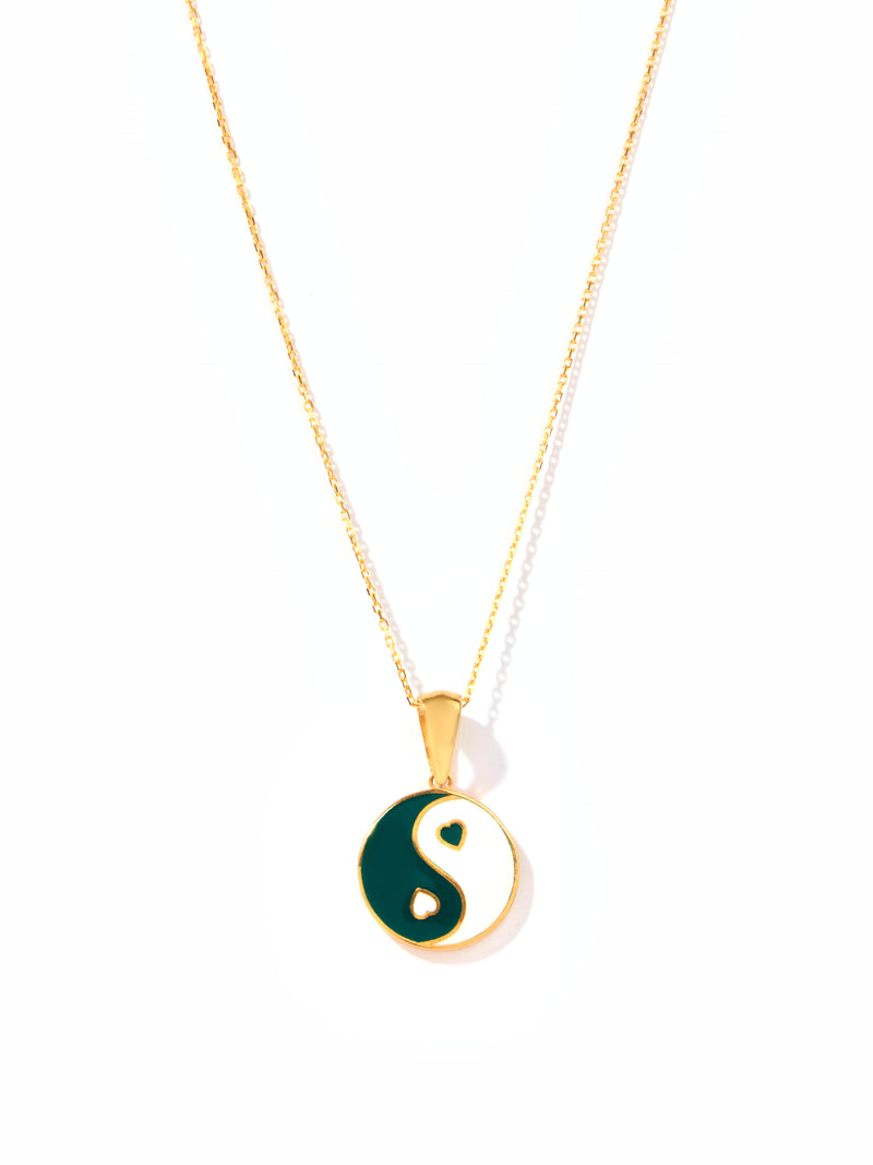 18ct Yellow Gold Chain with Ying & Yang Pendant - Green & White