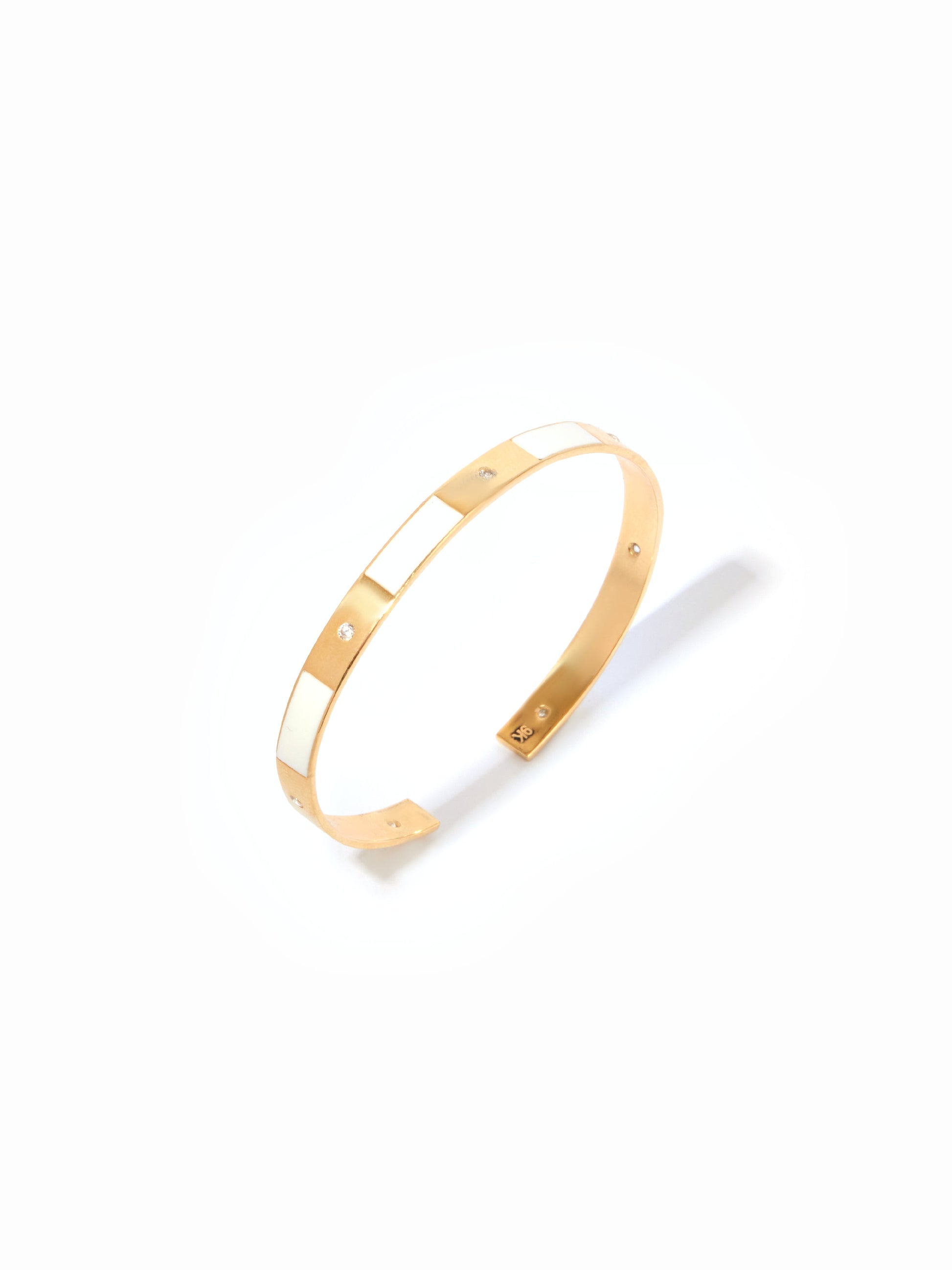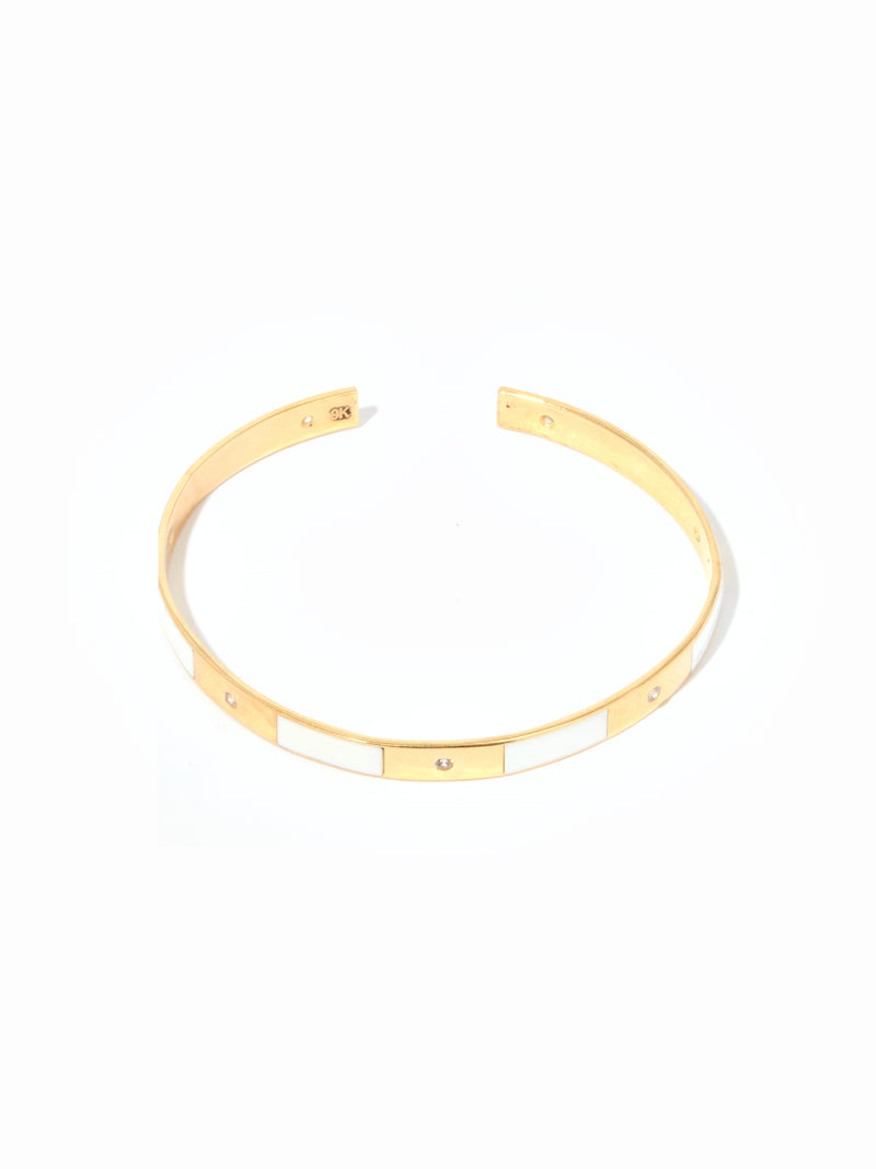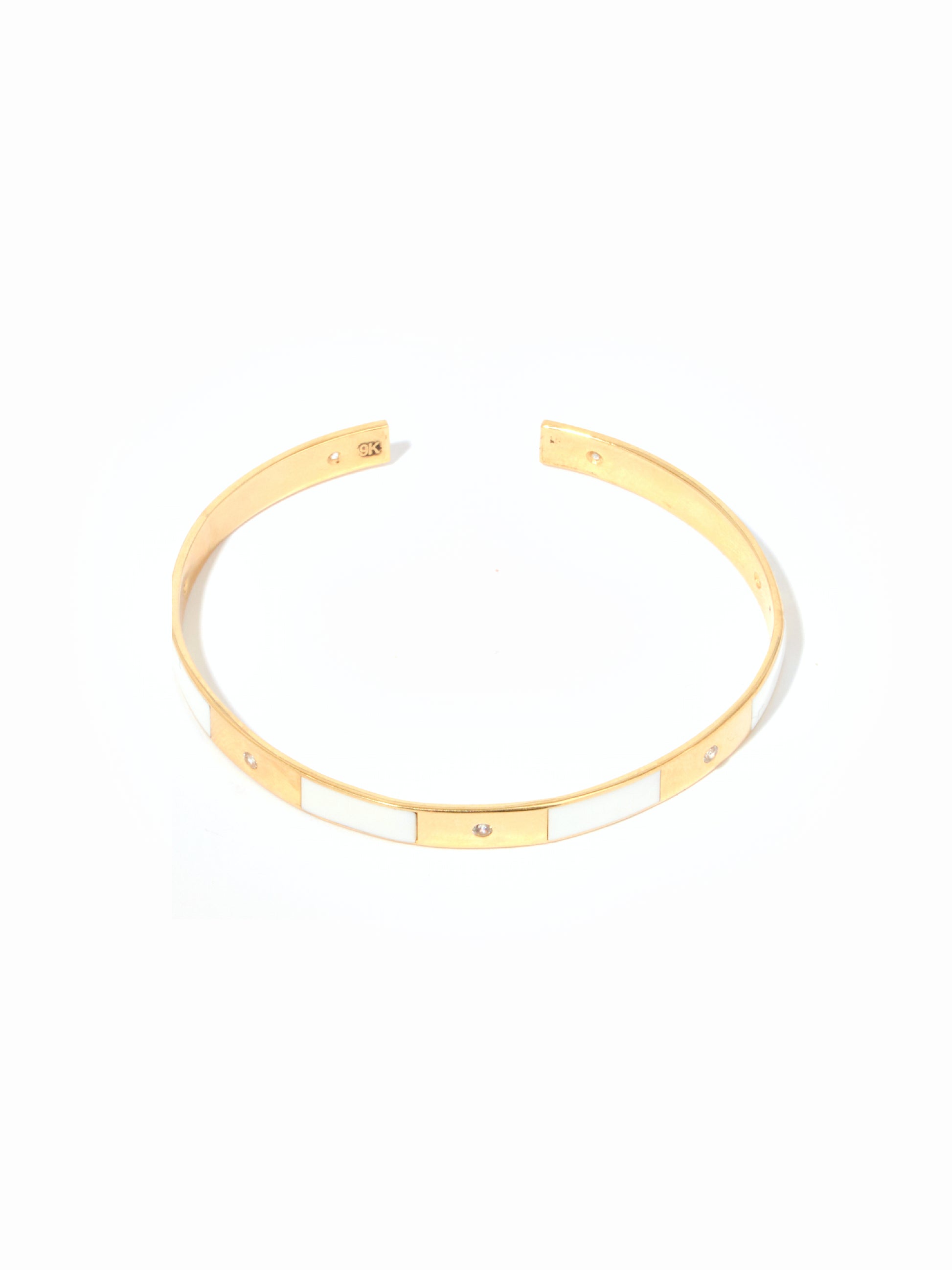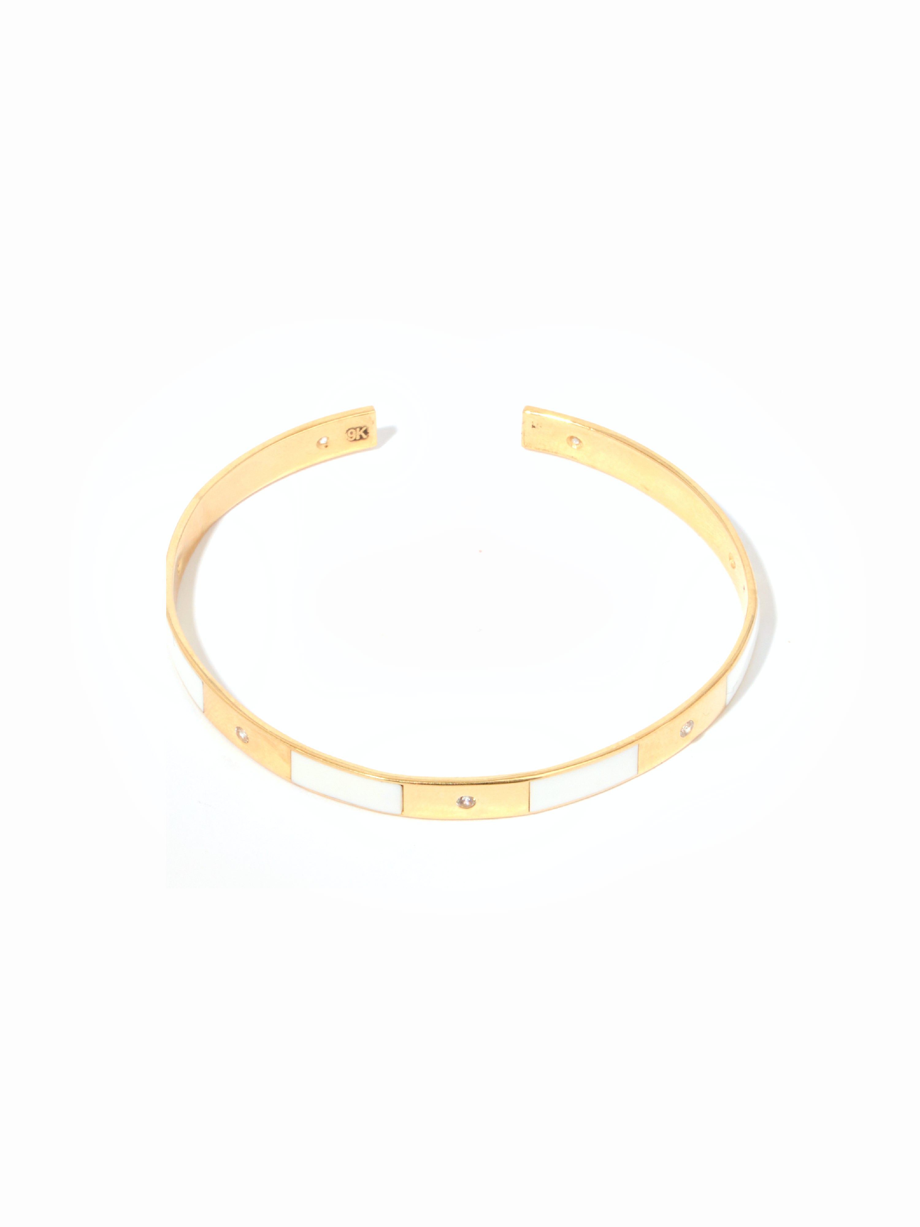 9ct Yellow Gold Cuff Bracelet with White Enamel